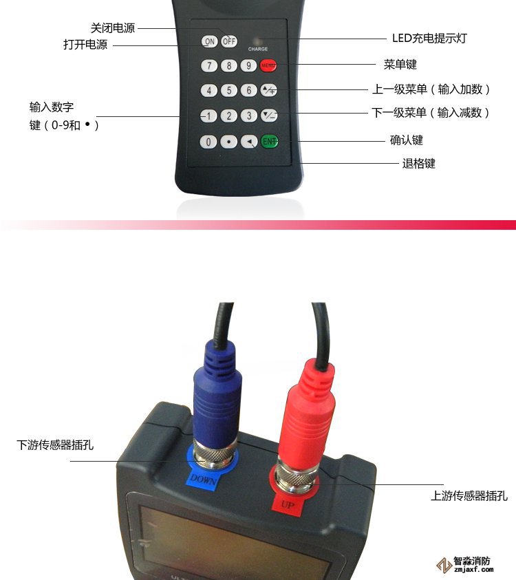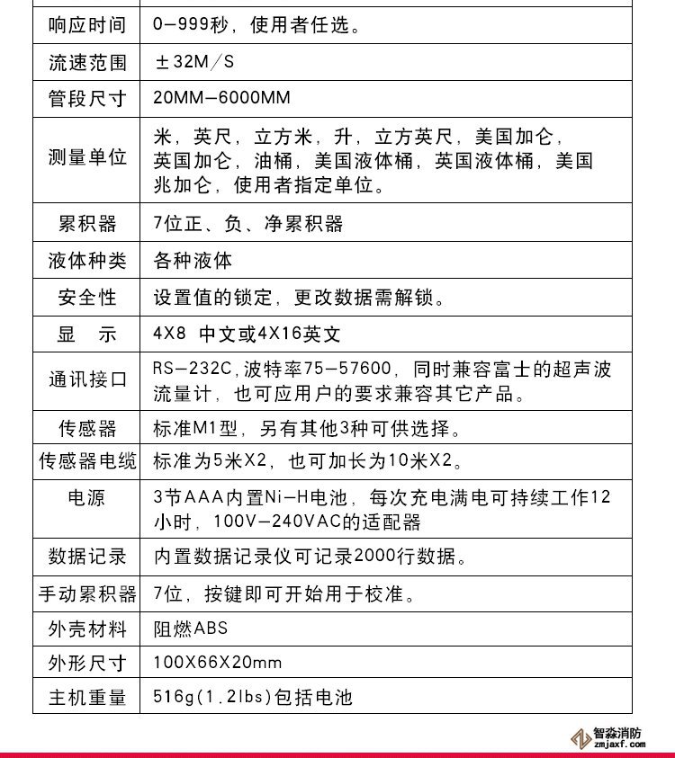 手持式超聲波流量計。其測量管徑在0-700mm,精度±1%。