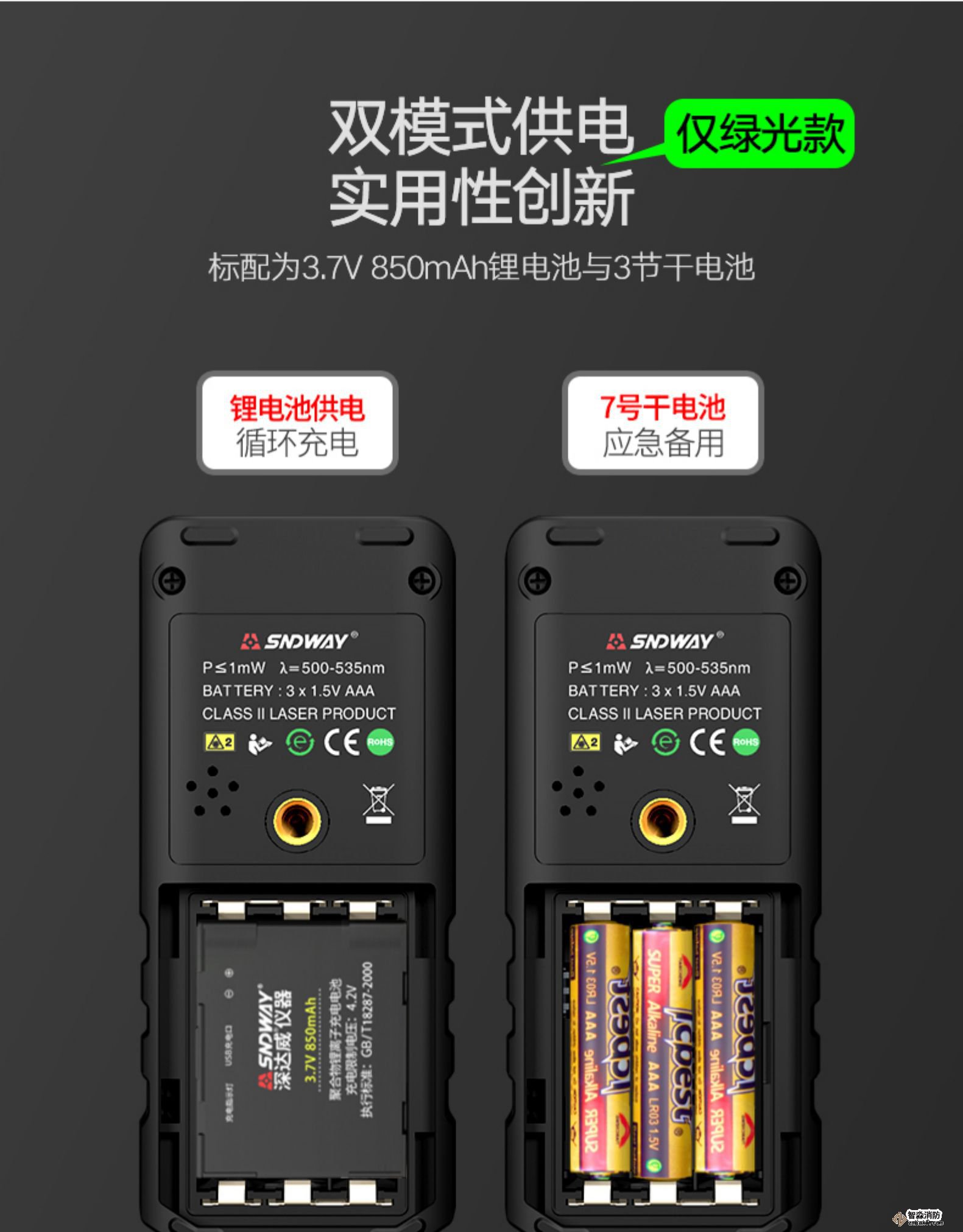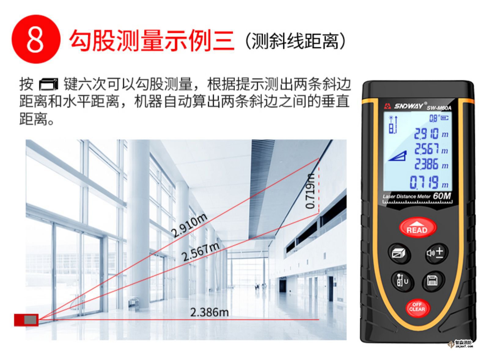 激光測距儀量程不小于50m;精度:3mm測量距離、面積、空間、體積
