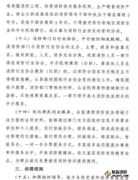《意見》還從加強組織領導、強化協同監管、完善法律法規、抓好督促落實4個方面提出了深化消防執法改革的保障措施。