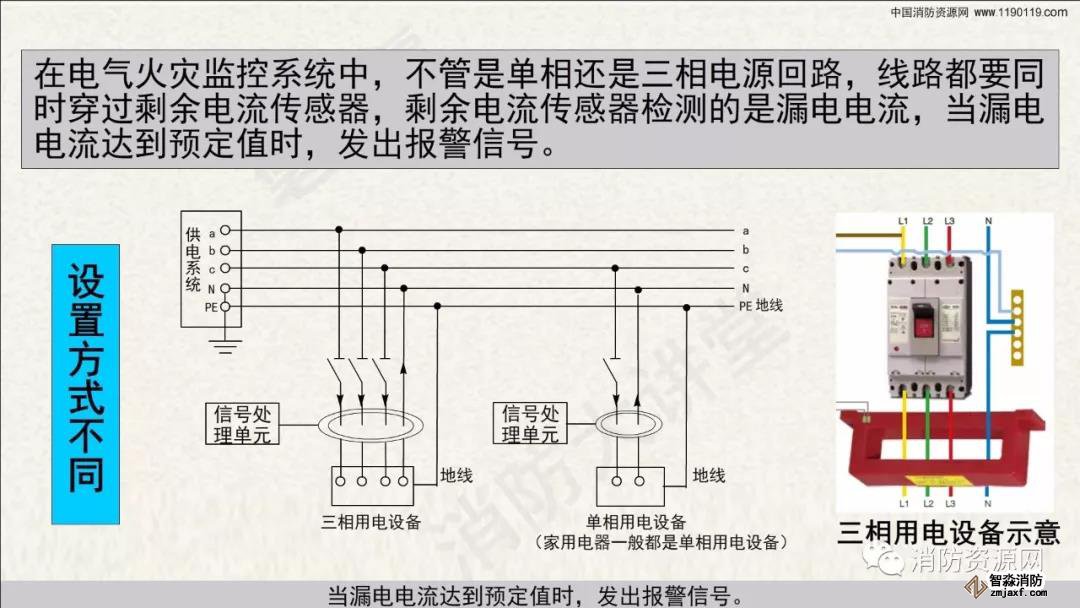在電氣火災(zāi)監(jiān)控系統(tǒng)中,不管是單相還是三相電源回路,線路都要同時(shí)穿過剩余電流傳感器。剩余電流傳感器檢測(cè)的是漏電電流,當(dāng)漏電電流達(dá)到預(yù)定值時(shí),發(fā)出報(bào)警信號(hào)。