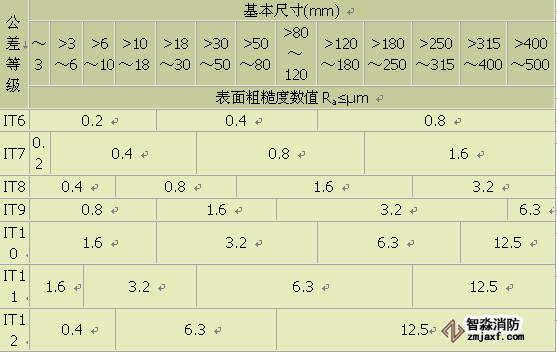 表1 公差等級與表面粗糙度值(用于精密機械)