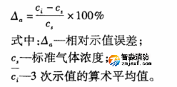 度的氣體通人3次,讀取各穩(wěn)定示值ci。按公式(1)分別計(jì)算出不同濃度測(cè)量值的示值誤差△a。